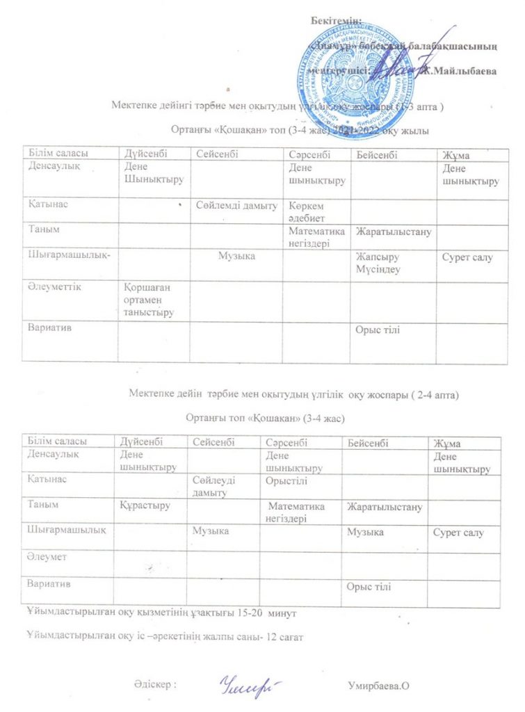 Балабақша туралы мәлімет