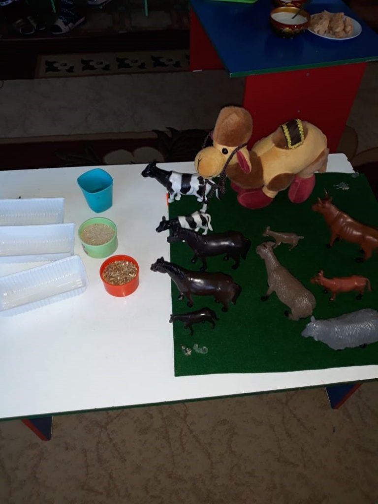 Мақсаты: Балаларды үй жануарларымен таныстыру, олардың төлдерінің атын үйрету. Оларға күтім, қамқорлық жасауды үйрету.