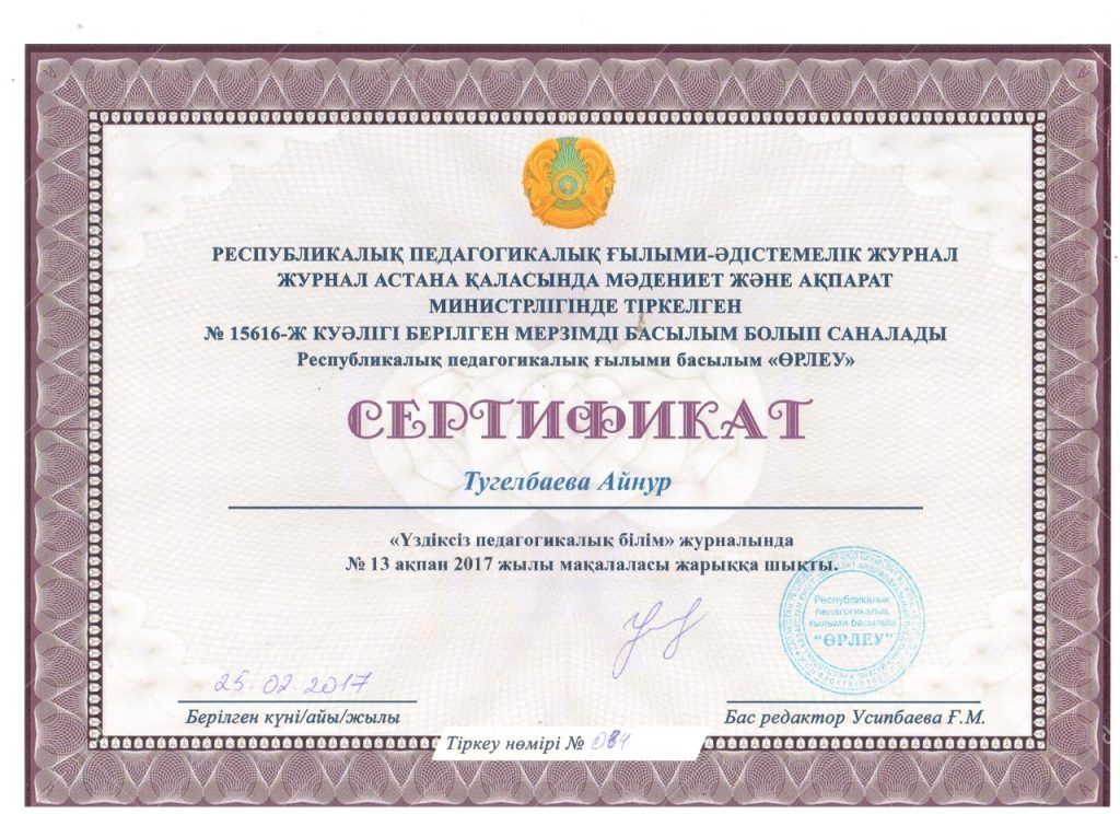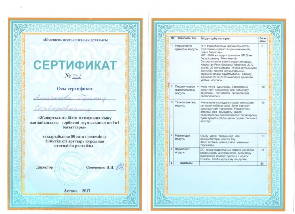 Сертификаттар 2017
